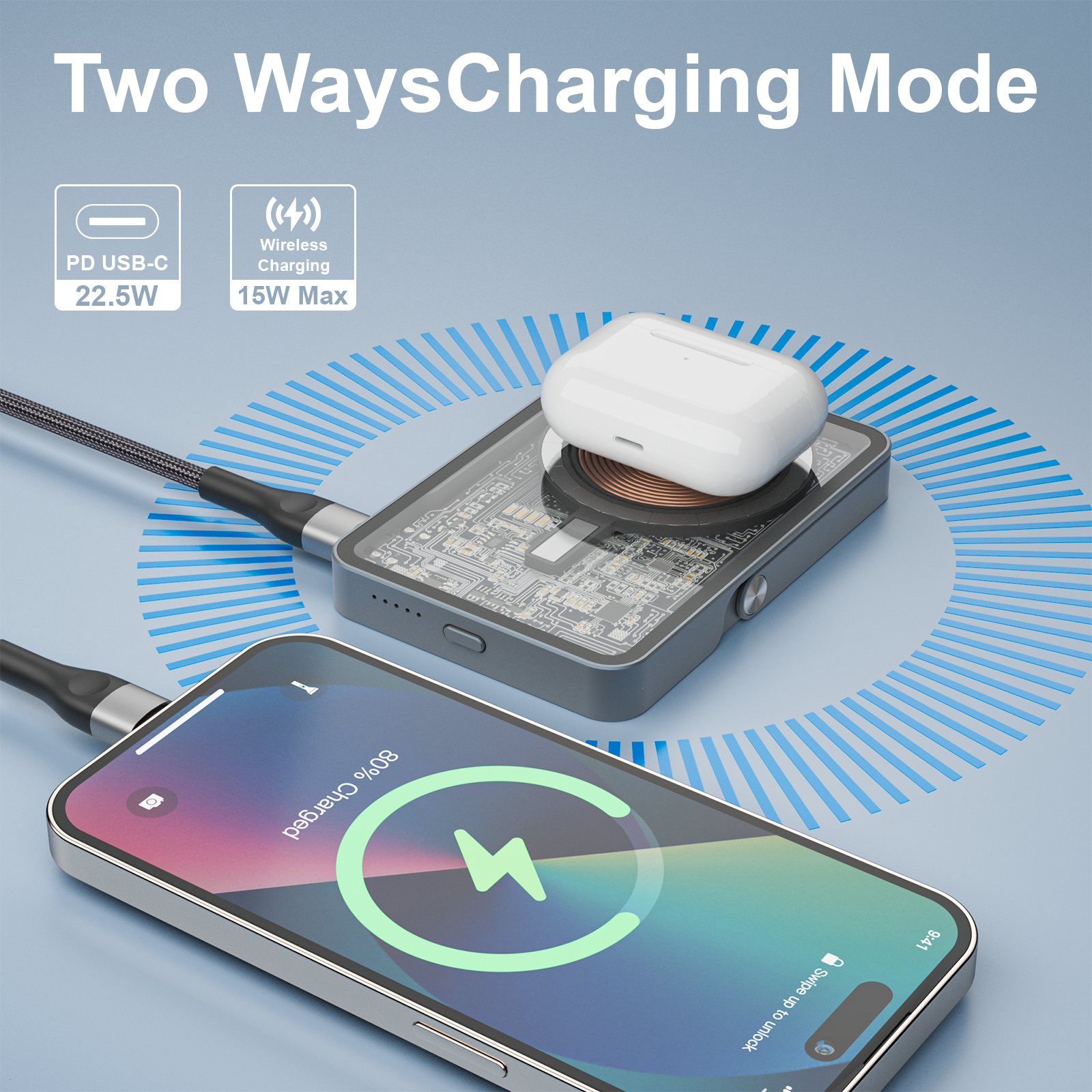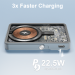 The Mezone 5000mAh MagSafe Powerbank PD 22.5W with Metal Stand is a compact and portable powerbank featuring MagSafe compatibility